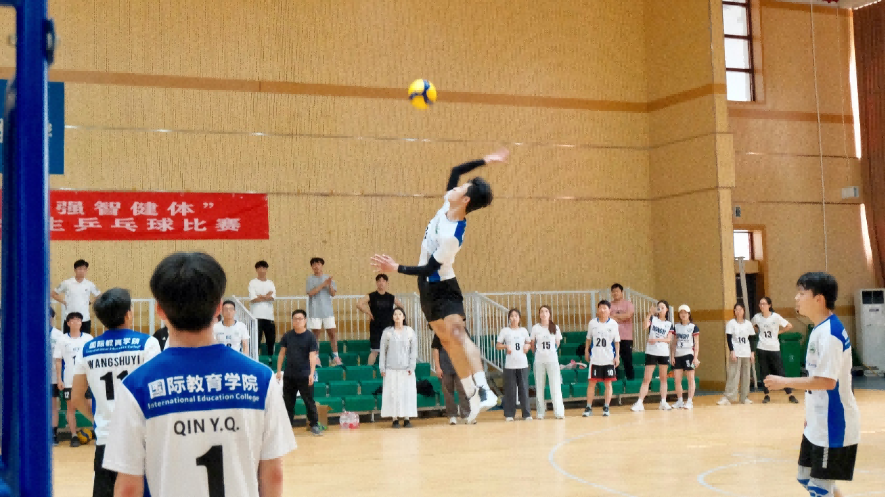 5月7日下午四点,紧张激烈的决赛在室内排球场打响。