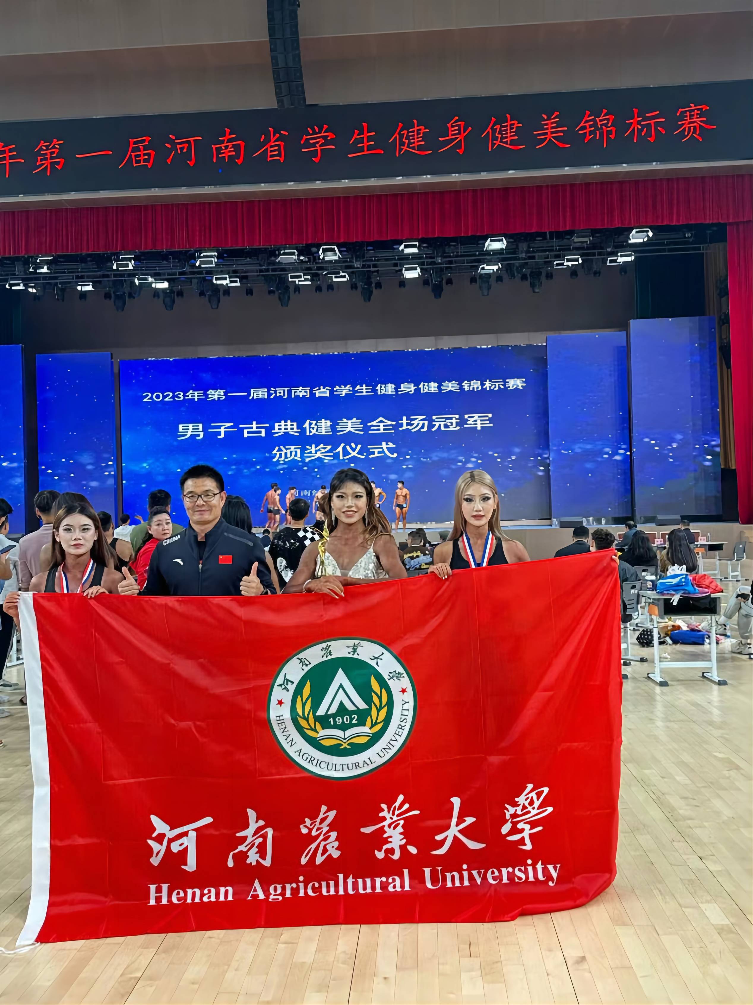 5名队员共参加了本科乙组的比赛。在比赛中,队员们不畏强手,顽强拼搏,克服脱水和饮食上的困难,充分发挥出最佳竞技水平。取得了乙组女子形体模特A组冠军,乙组女子健身模特A组冠军,女子形体模特B组亚军,乙组女子形体模特A组第五名,乙组团体一等奖,乙组优秀组织奖等优异成绩。