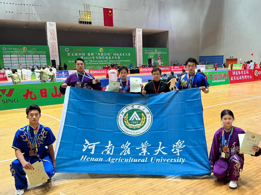 (通讯员:樊艺勇 图:樊艺勇)由国家体育总局、中国武术运动管理中心、中国武术协会、江苏省体育局举办的第五届中国.徐州“丝路汉风”国际武术大赛暨2023全国传统武术比赛,于12月6日至10日在江苏省徐州市奥体中心拉开帷幕。由院长董勇任领队、樊艺勇为主教练的河南农业大学武术代表队报名参赛,共经过12场的激烈角逐,我校武术健儿及留学生在赛场中不畏强手,秉持顽强拼搏、勇攀高峰的意志和信念,一举斩获3金4银9铜的佳绩,樊艺勇老师获优秀教练员称号,樊琳琳、武凌峰两名同学获优秀运动员称号。