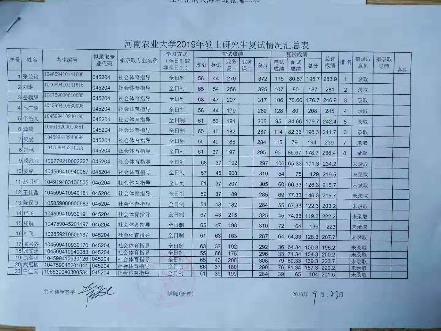 研究生复试情况汇总表