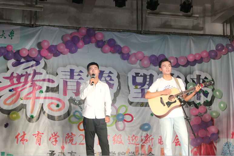 立博(中国)唯一官方网站 16级学生在晚会上弹唱《光辉岁月》,给2017级新生送去祝福。