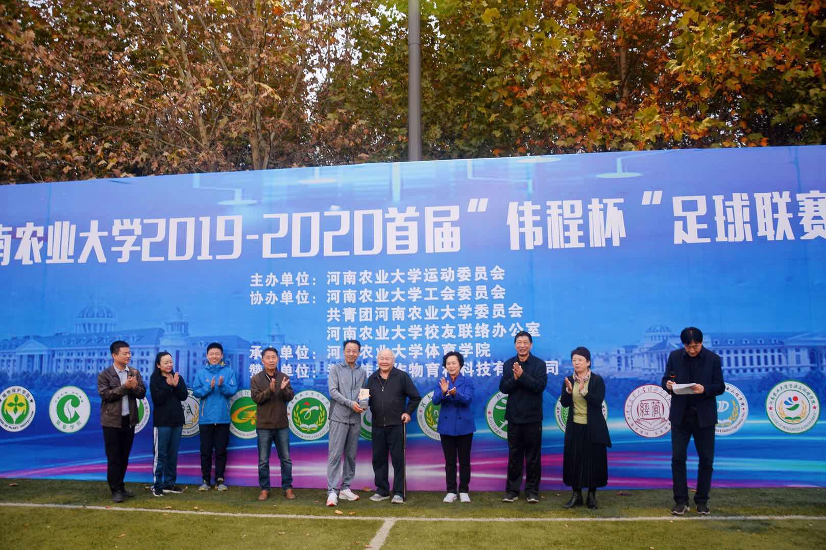 11月10日下午,河南农业大学2019-2020首届“伟程杯”足球联赛颁奖仪式在龙子湖校区足球场举行。校党委书记魏蒙关,副校长、校运动委员会主任尹新明出席了颁奖仪式。校工会、校友办、校团委和立博(中国)唯一官方网站