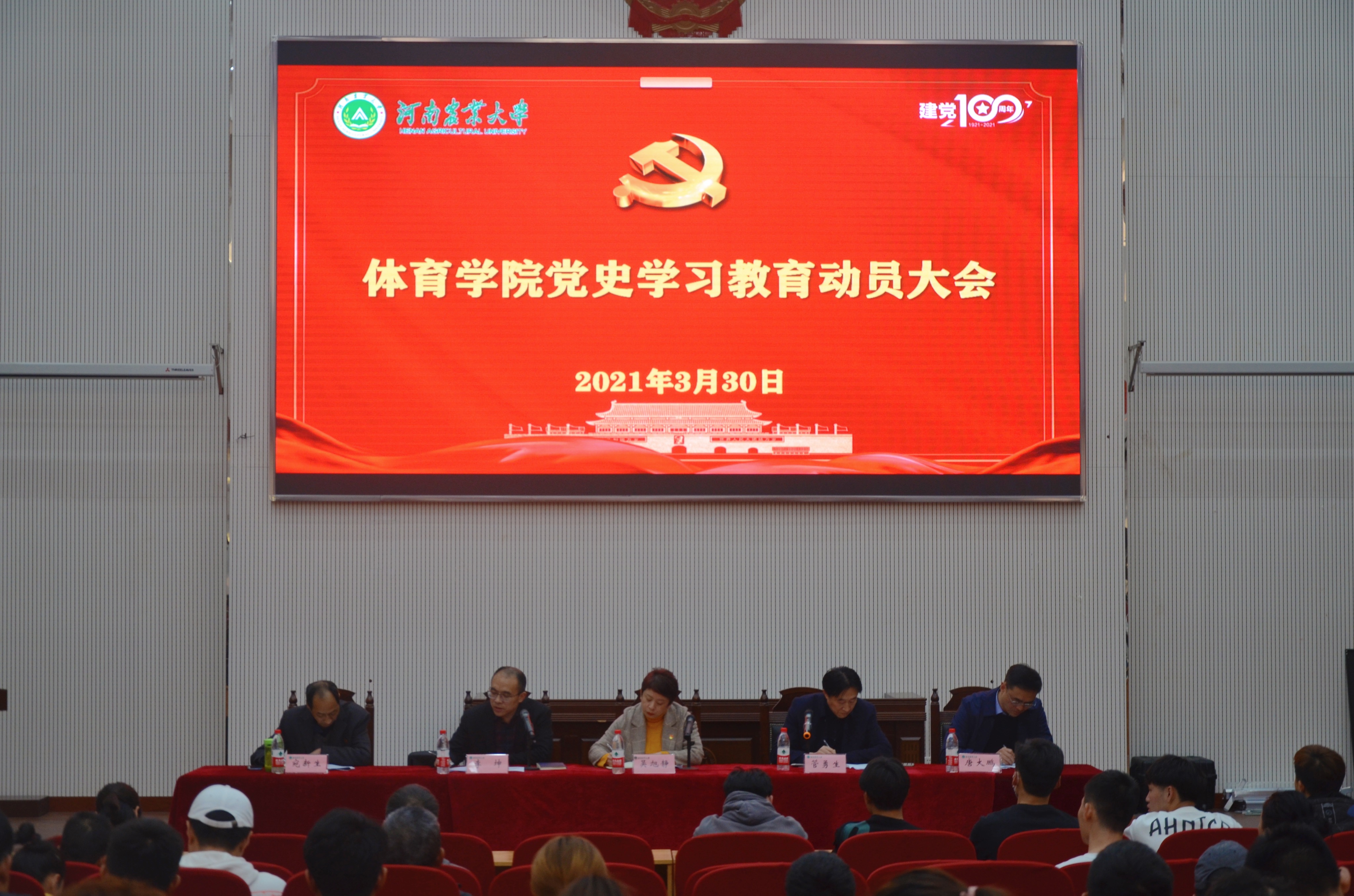 在繁塔楼大教室三召开党史学习教育动员大会,认真学习贯彻习近平总书记重要讲话精神,落实中央、省委和学校党史学习教育动员大会部署和校党委魏蒙关书记讲话要求,对立博