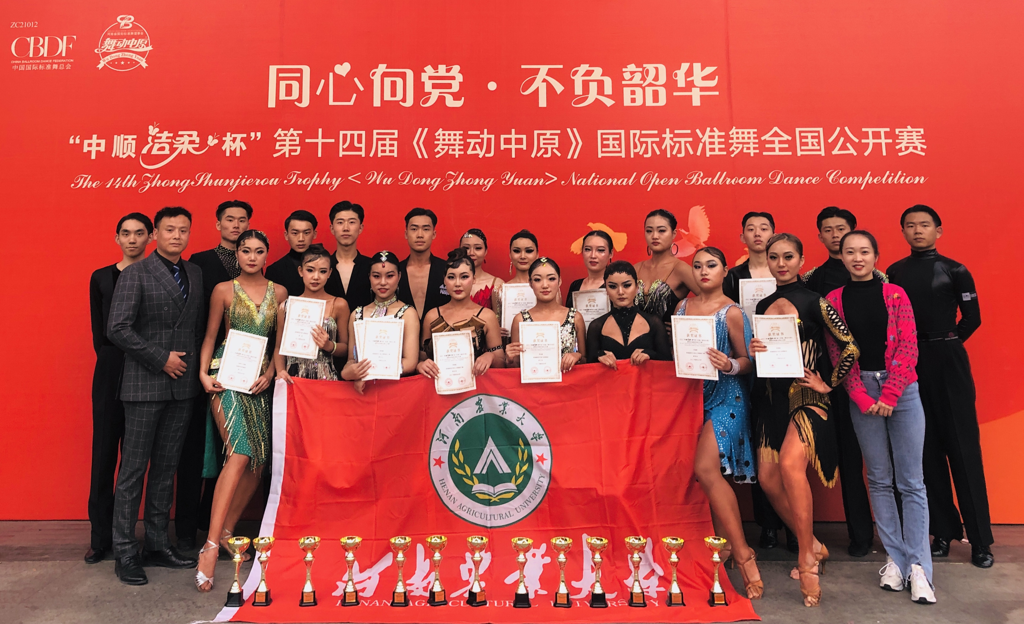 舞蹈表演专业师生以一场专业竞赛形式为建党100周年献礼。5月3日-5日,由河南省舞蹈家协会国标舞委员会主办的“同心向党、不负韶华”第十四届《舞动中原》国标舞全国公开赛在河南郑州隆重举行,本届大赛吸引了来自北京、上海、河北、辽宁、湖南、湖北、山东、安徽、山西、陕西、甘肃、新疆、河南等14个省市区的234支代表队近万名选手参加。农大代表队由立博官网