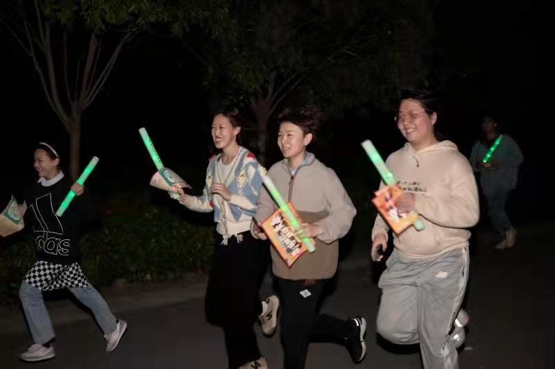 活动在立博(中国)唯一官方网站 学子活力四射的音乐舞蹈中拉开帷幕,吸引1000多名师生共同参与。立博(中国)唯一官方网站 党委副书记李坤到场致辞并宣布开跑。参赛者们挥舞着荧光棒奔跑、打卡问答、游艺,短暂而寒冷的秋天此时此刻迅速升温,给人以不一样的动力。聚荧荧之光,燃青春之火,沿途光影舞动,笑语欢声,一座座龙子湖校园地标建筑在参与者们的奔跑中精彩呈现。体育馆、北湖、图书馆、凯旋门、排球场、宿舍楼前六个打卡点分别设置了对应党史、校史不同阶段的问答环节,使同学们深化了对我们党取得瞩目成就的光辉历程以及我校1902年建校以来悠久历史的认知,跳绳等健全体魄与富含趣味性的游戏使师生们的身心得到放松,感受到了运动的快乐,保持良好的心理状态。