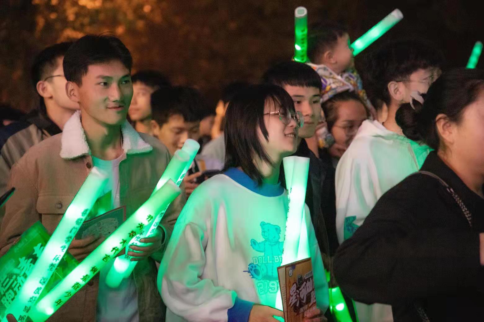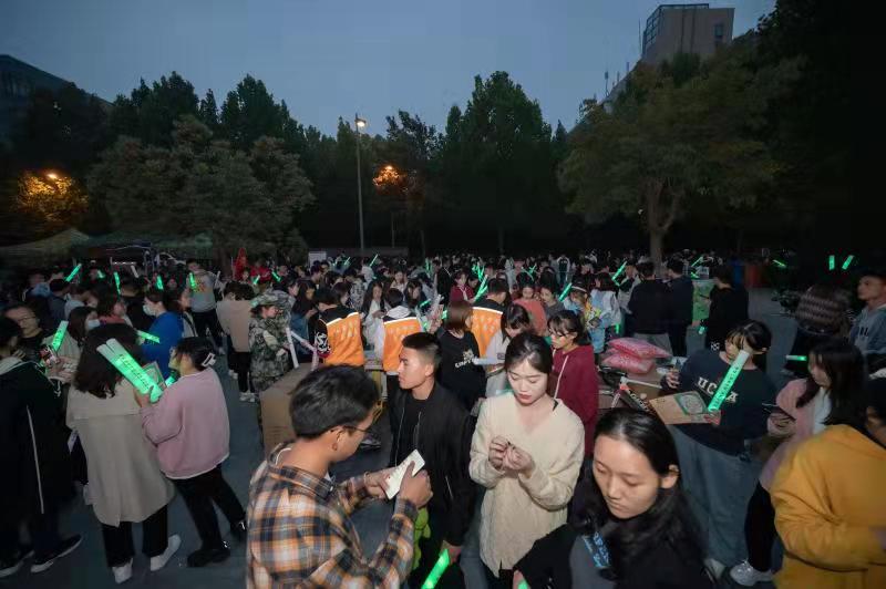 以“星河灿烂 跑动青春”为主题的校园荧光跑活动在一餐门口广场举行。