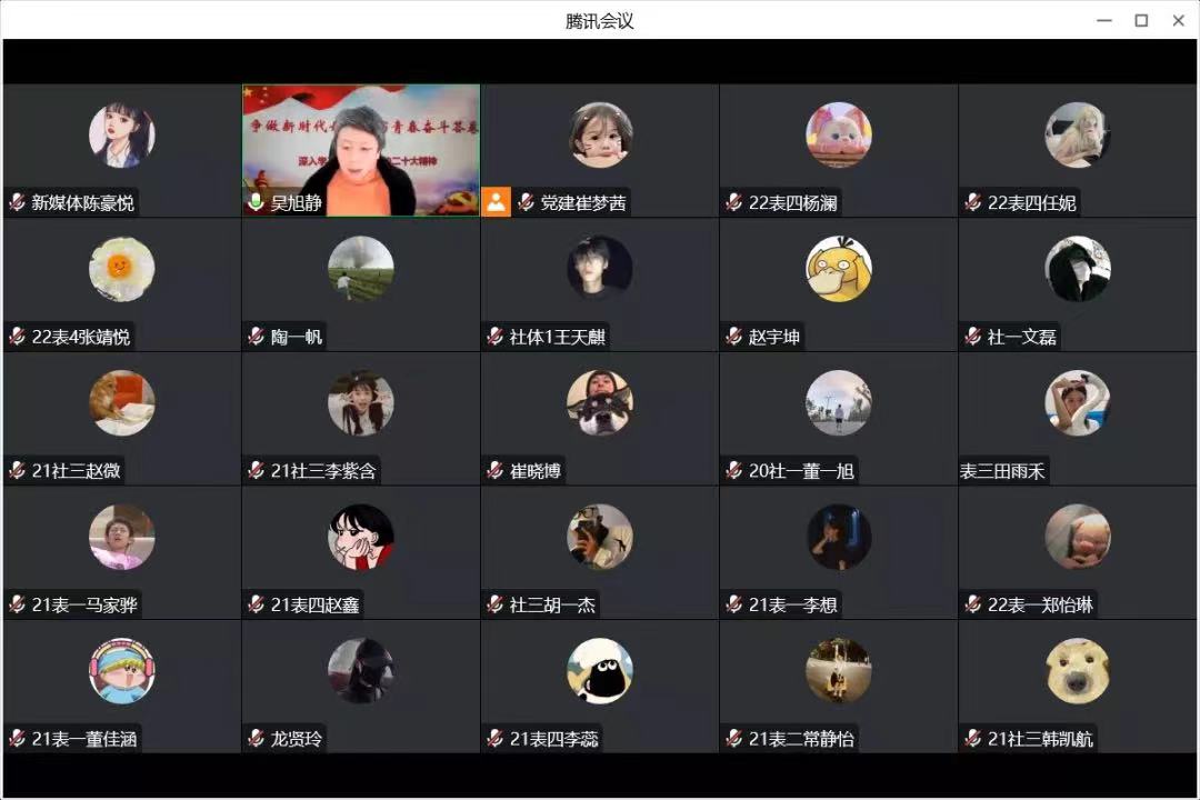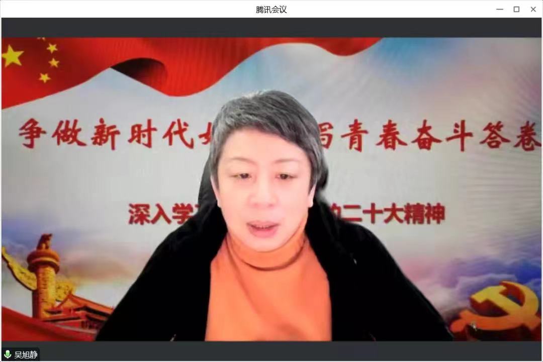 党委书记吴旭静在腾讯会议为体院入党积极分子开展了题为《争做新时代好青年 书写青春奋斗答卷》的专题宣讲。