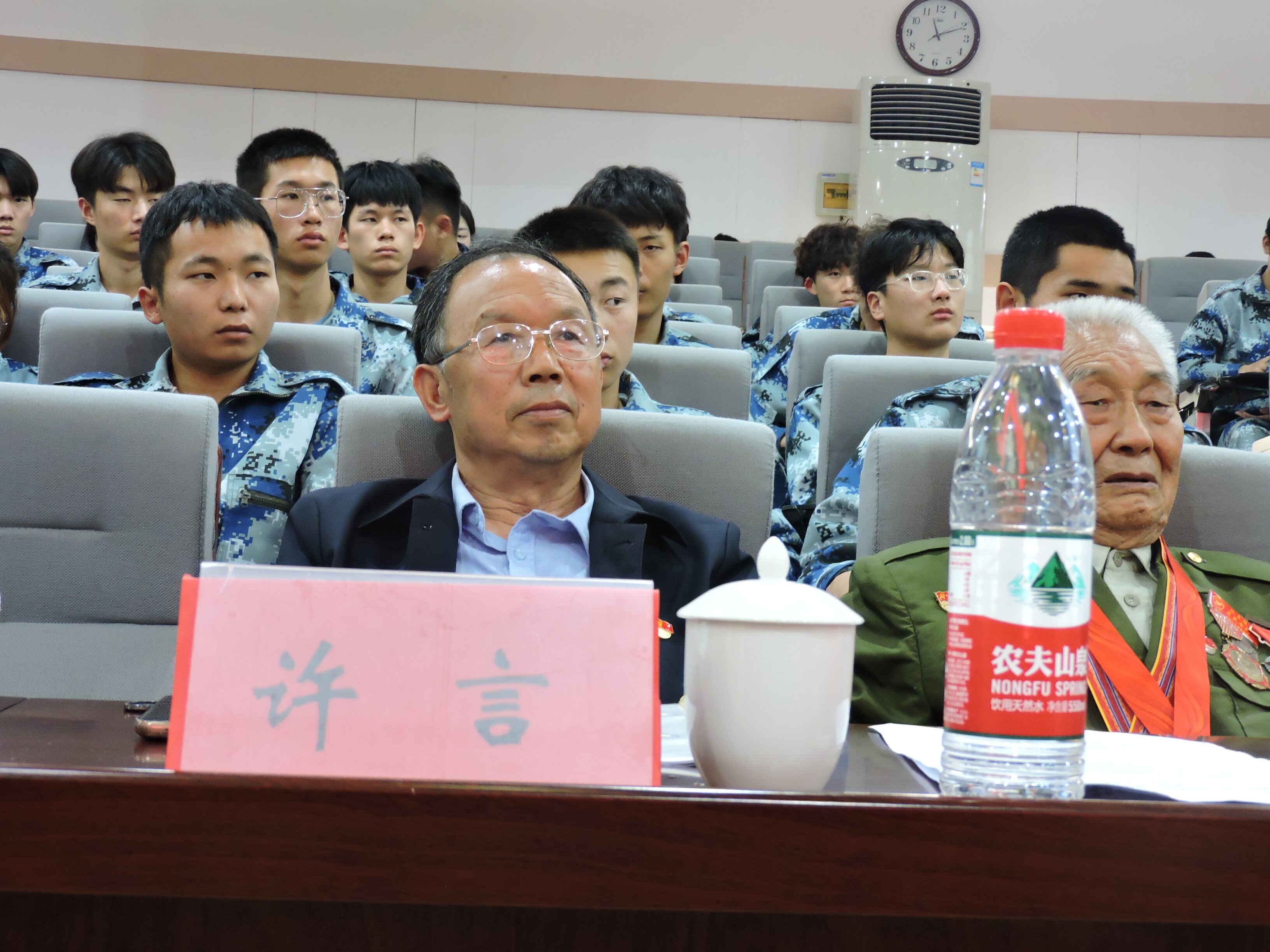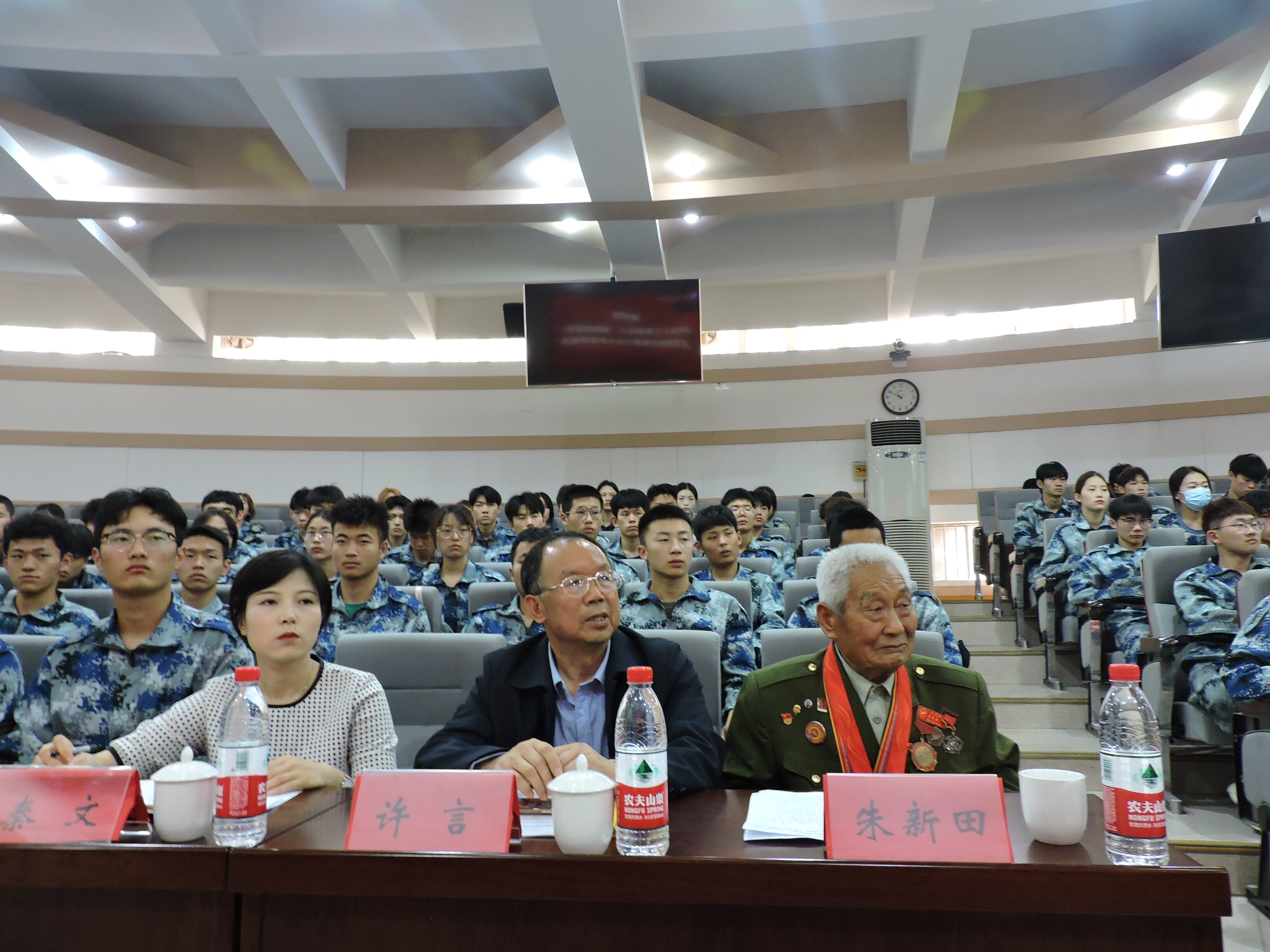 宣讲中,抗美援朝志愿军老战士朱新田结合个人经历,与正在参加军训的2022级师生们共同追忆抗美援朝保家卫国的红色岁月,让红色种子在师生们心中生根发芽,让红色基因、革命薪火代代传承、生生不息。随后, 传承红色基因策划总监、退役军人红色宣讲团成员、首届最美退役军人许言同志结合党的二十大精神作了题为《在弘扬党的精神谱系中厚植崇军尚武家国情怀》的主题宣讲。