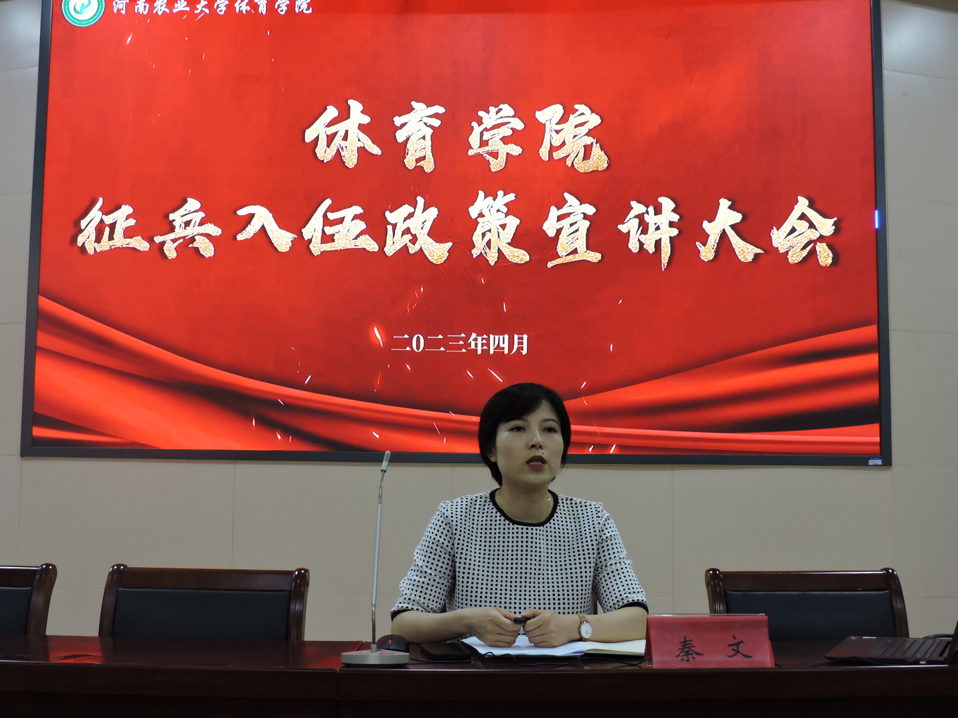 会后,2022级辅导员秦文进行了2023年征兵入伍政策宣讲。