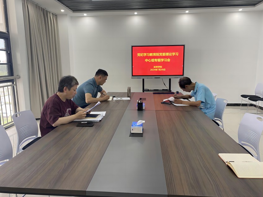 7月30日下午,院党委在英林讲堂四楼立博 党建工作室召开理论学习中心组学习会,专题学习党的二十届三中全会精神。院班子成员出席会议。院党委书记吴旭静主持会议。