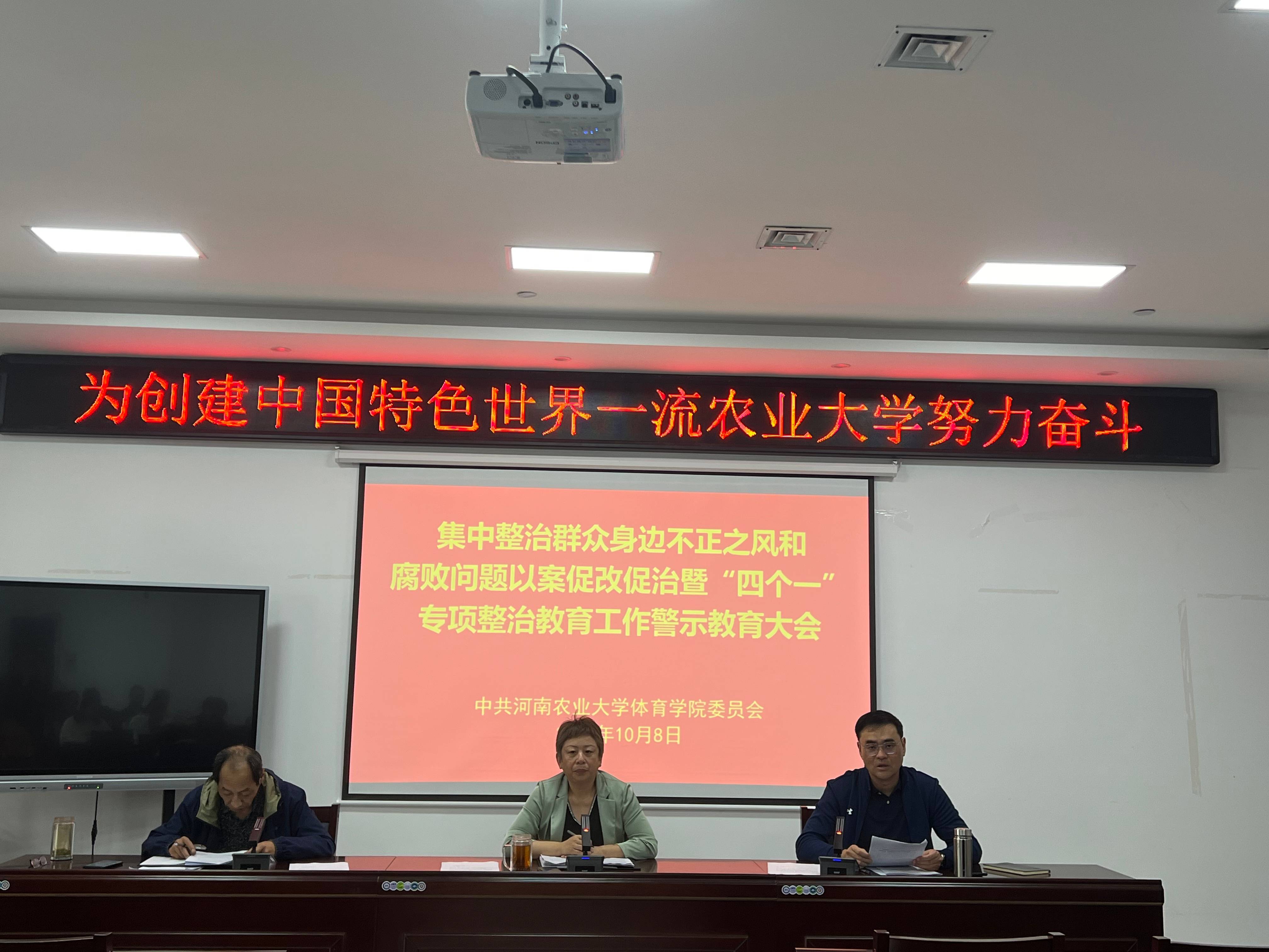 唐大鹏传达《河南农业大学集中整治群众身边不正之风和腐败问题以案促改促治实施方案》《关于进一步严明纪律要求,开展“四个一”专项教育整治工作方案》通知精神。