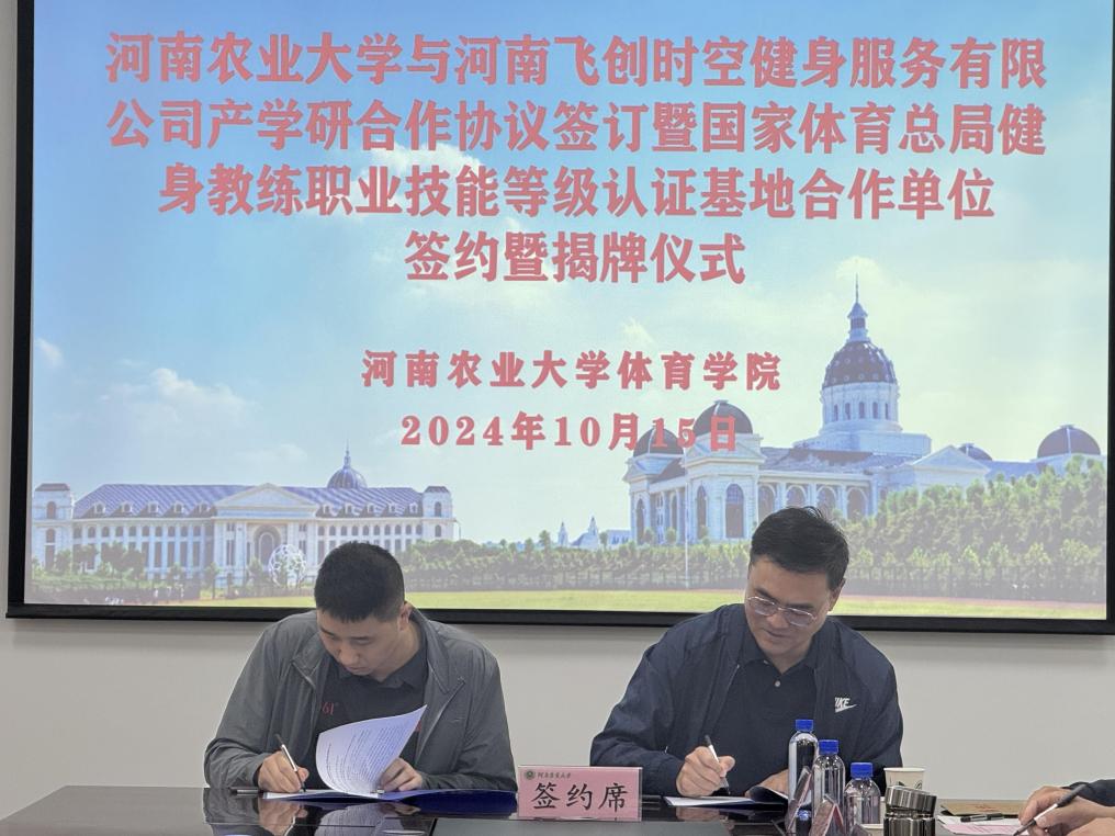 河南农业大学与河南飞创时空健身服务有限公司产学研合作协议签订暨国家体育总局健身教练职业技能等级认证基地合作单位揭牌仪式成功举行