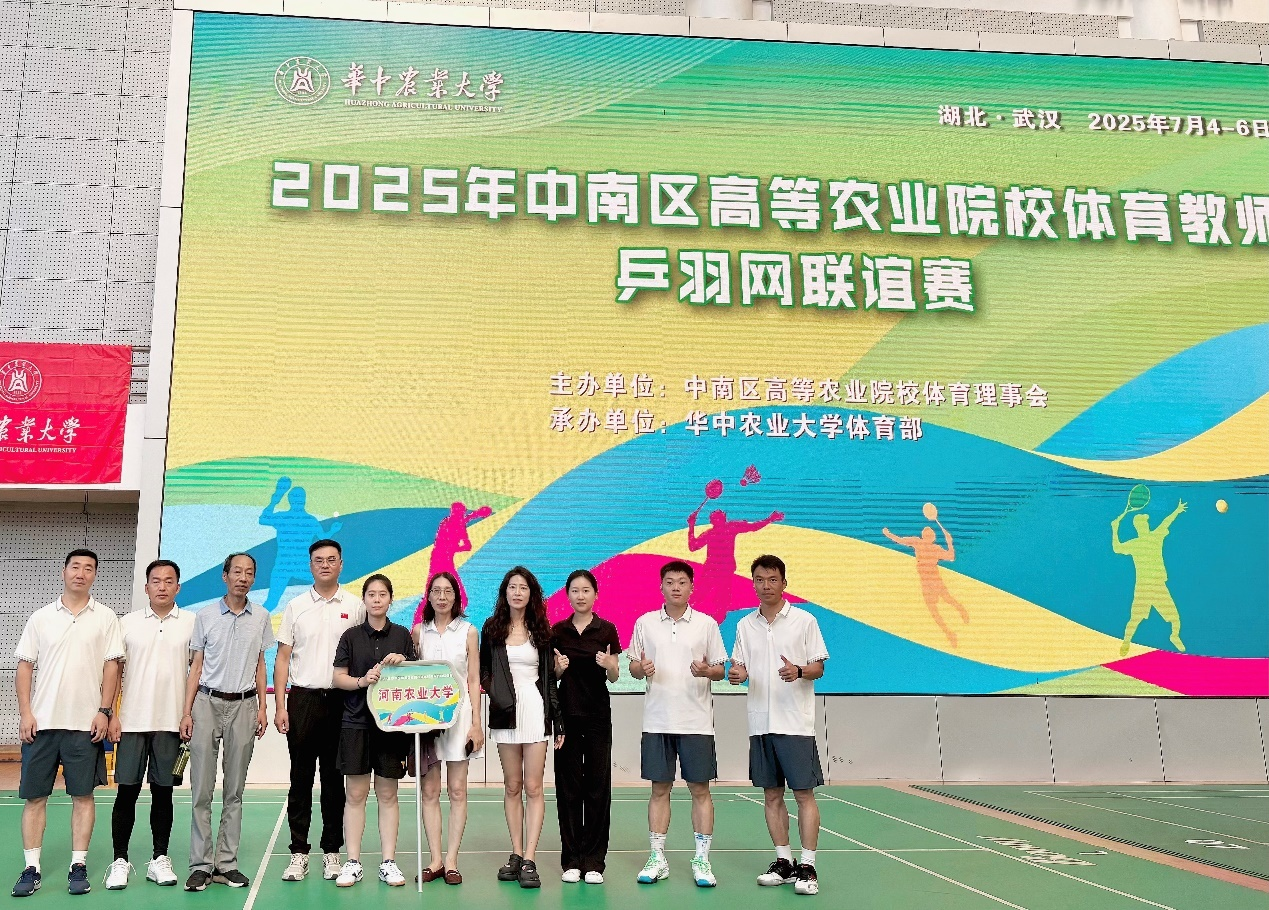 (通讯员/图 朱娜)2025年7月5日至6日,由中南区高等农业院校体育理事会主办、华中农业大学体育部承办的2025年中南区高等农业院校体育教师乒羽网联谊赛在华中农业大学东体育馆成功举行。我校代表队由立博官网 院长唐大鹏担任领队,副院长宛新生担任教练,孙满意、贾震、朱娜、刘梦亚、夏文龙、李高华、王志广、王建民、沈小乐、袁静作为运动员参加此次比赛。我校教师凭借出色的专业素养和团队协作,最终荣获团体总分第四名的佳绩,并在多个单项比赛中摘金夺银,充分展现了河南农大体育人的风采。