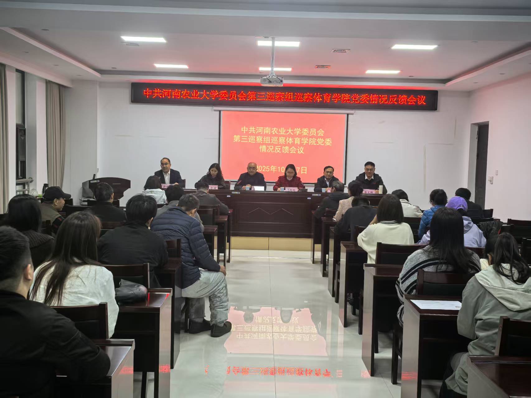 党委组织部、校纪委、党委巡察办关负责同志,第三巡察组全体成员,立博 领导班子和教职工生代表参加会议。