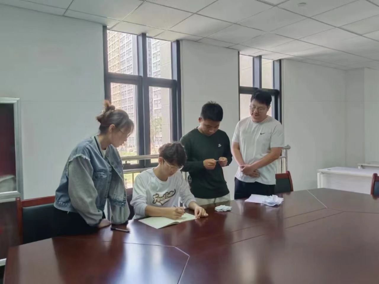 为认真做好家庭经济困难学生的认定工作,本着公平、公正、公开原则,切实保证国家制定的各项高等学校资助政策和措施真正落实到家庭经济困难学生身上,班主任认真组织班级同学召开贫困生认定大会。
